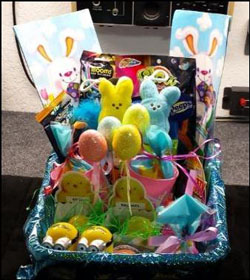 This is an example of an Easter gift basket previously made. Each basket is custom made according to the Favorites List Form (see the contact page) and items are personalized.